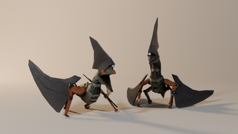 Le processus a mis l'accent sur la sculpture organique et la traduction de concepts 2D en volumes 3D. J'ai géré l'intégralité du workflow, de la modélisation à la création des textures, en utilisant Substance Painter pour le Texturing PBR et Blender pour le Look-Dev et le rendu final.