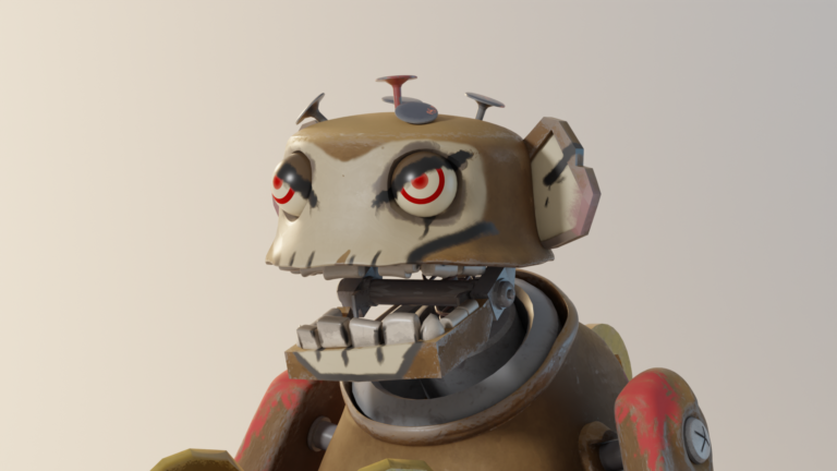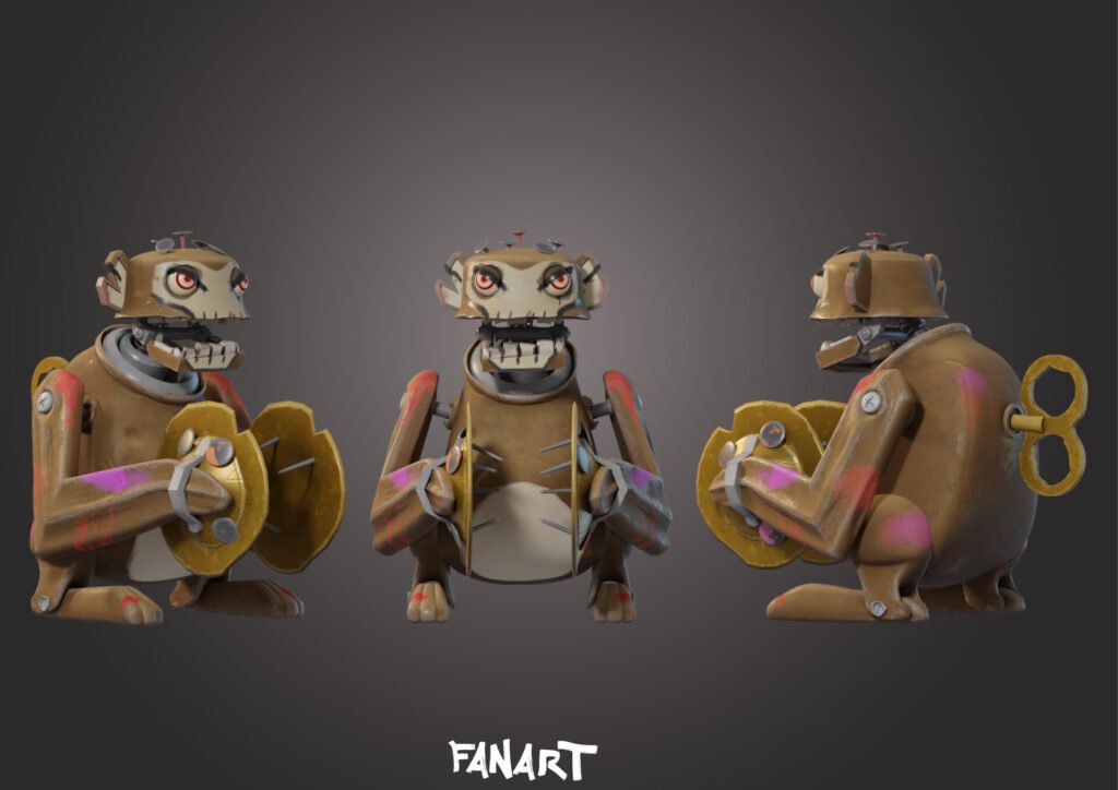 Ce projet est une étude de style axée sur l'adaptation d'une propriété intellectuelle forte. L'objectif était de reproduire le niveau de détail et la direction artistique complexe du Singe mécanique de la série Arcane, tout en maintenant un modèle optimisé et lisible.