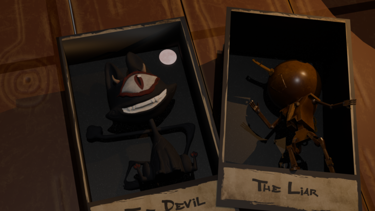 Ce projet personnel visait à créer deux personnages stylisés – The Liar (Le Menteur) et The Devil (Le Diable) – en s'appuyant sur un style cartoon sombre et affirmé.