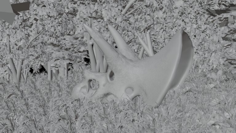 Ce projet est une étude d'anatomie et de structure osseuse réalisée suite à l'observation d'un fossile au Muséum national d'Histoire naturelle. Mon objectif était de reproduire avec exactitude les volumes complexes et les textures irrégulières du crâne de Tricératops.